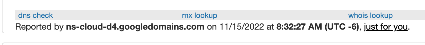 Example: Mylocalads.co's DNS is hosted by Google Domains (now SquareSpace Domains).