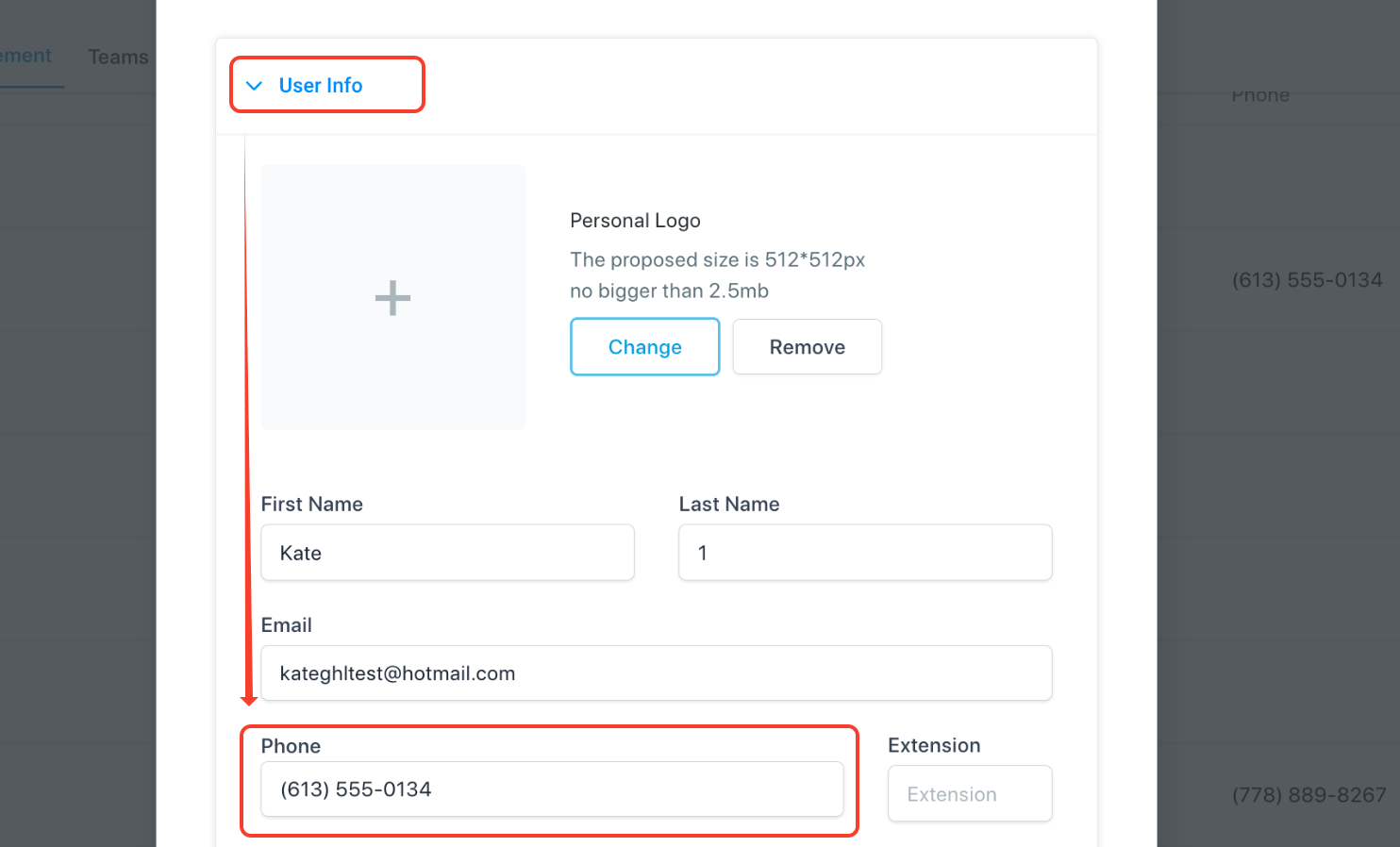 Check what the user phone number is > Expand User Info in the first section to check the user phone number.